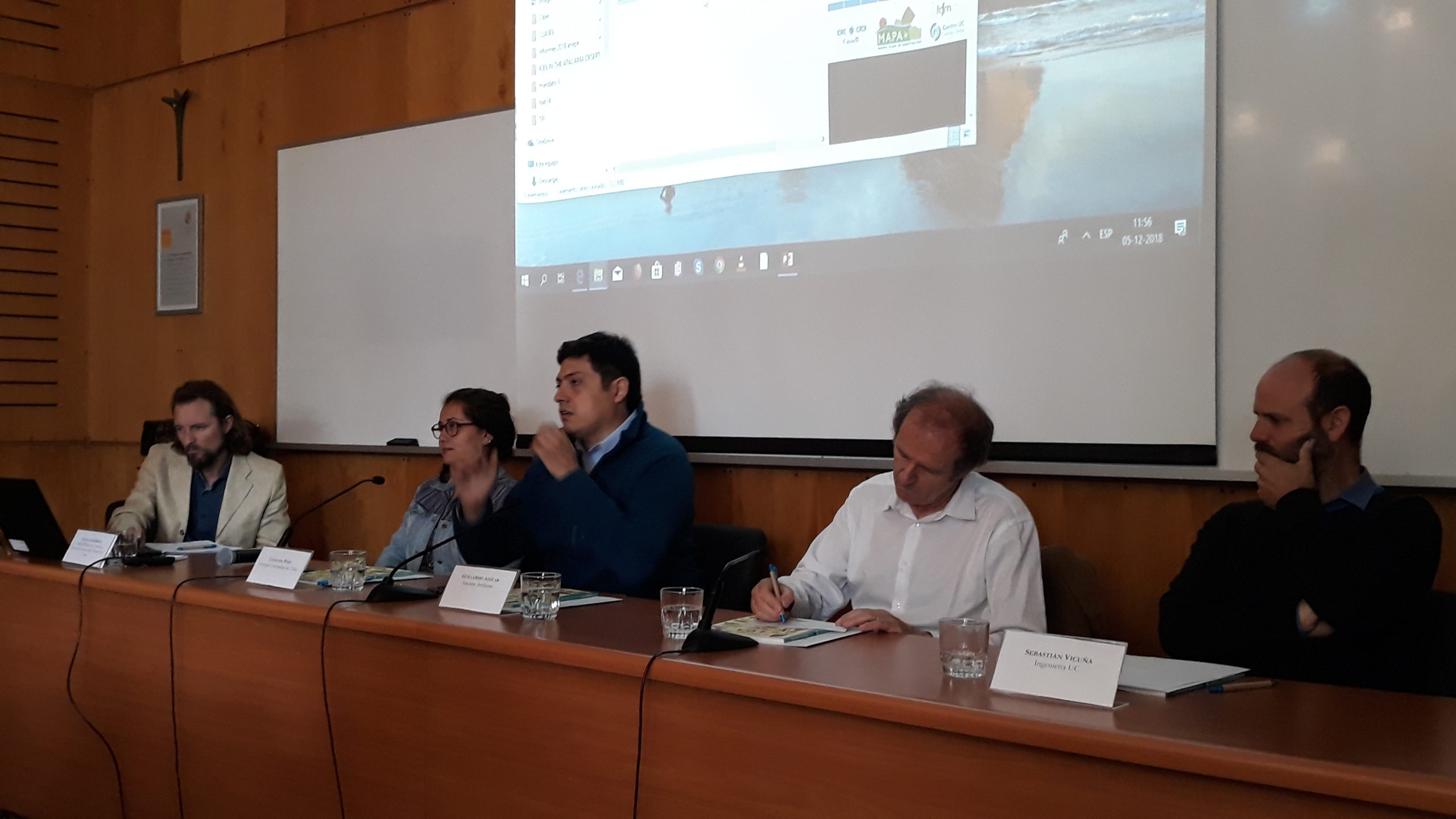 Luego, vino el turno de los especialistas chilenos, comenzando con Catalina Pino, Geóloga de la Universidad de Chile, con la ponencia Glacial and periglacial geomorphological study of the upper basin of the Cochiguás River, and the situation of the presence and evolution of rocky glaciers. A continuación, Guillermo Azócar, de Atacama Ambiente, habló sobre Modeling of mountain permafrost distribution in the Semi-ardi Chilean Andes. Seguidamente, Gino Casassa, Jefe de la Unidad de Glaciología y Nieves de la Dirección General de Aguas (DGA), quien expuso sobre los Glaciares y nieves en Chile. Finalmente, se cerró el seminario con la participación de Sebastián Vicuña, Director del Centro de Cambio Global UC y Profesor Miembro del Centro de Derecho y Gestión de Aguas UC, cuya presentación estuvo focalizada en Los impactos y adaptación al cambio climático en una cuenca glacio-nival en la zona central de Chile.