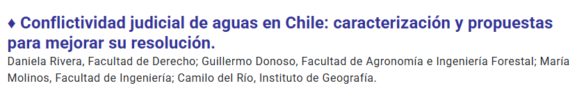 El proyecto "Conflictividad judicial de aguas en Chile: caracterización y propuestas para mejorar su resolución", propuesto por nuestros profesores miembros Daniela Rivera, Guillermo Donoso, María Molinos y Camilo del Río, fue uno de los seleccionados por el Concurso de Políticas Públicas 2019, el cual se desarrollará entre marzo y diciembre del año en curso.