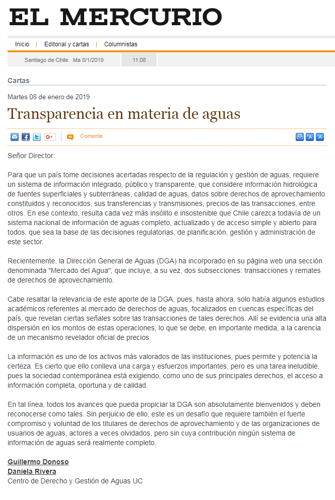 [El Mercurio] Transparencia en materia de aguas