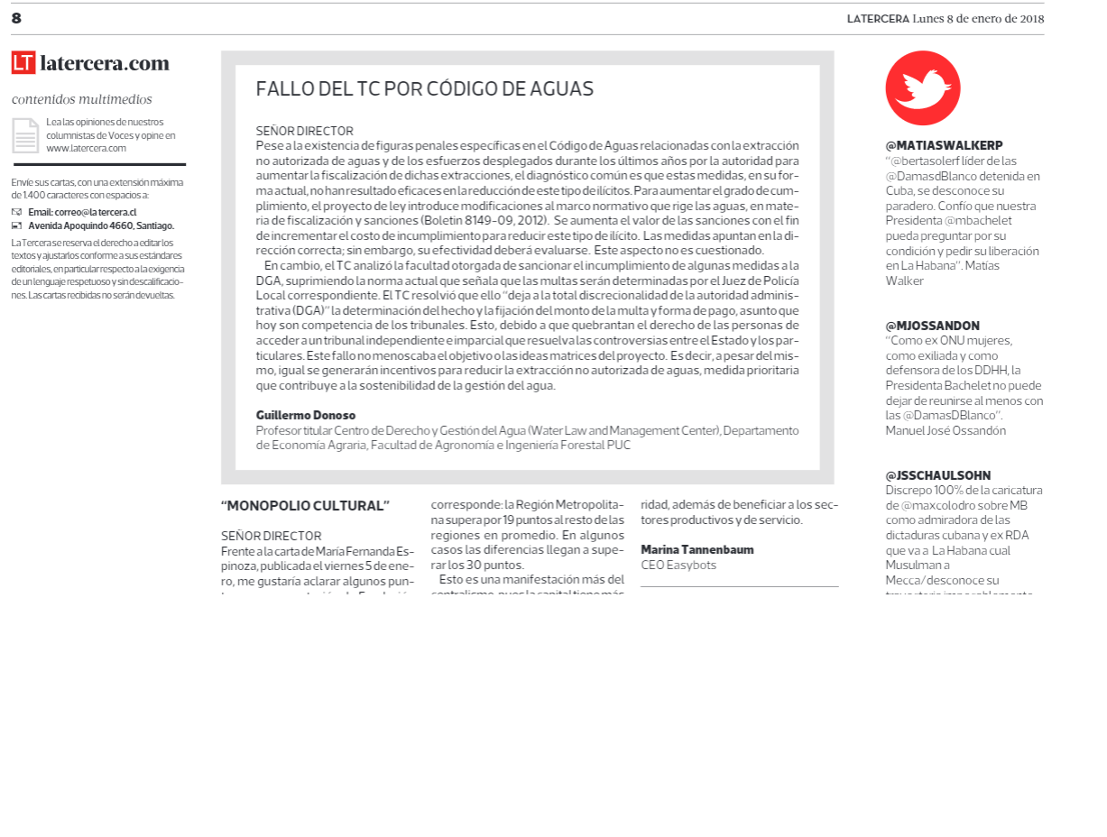 Revisa aquí la Carta de uno de nuestros Profesores Miembros, Guillermo Donoso, publicada en La Tercera. el día 8 de enero de 2018.
