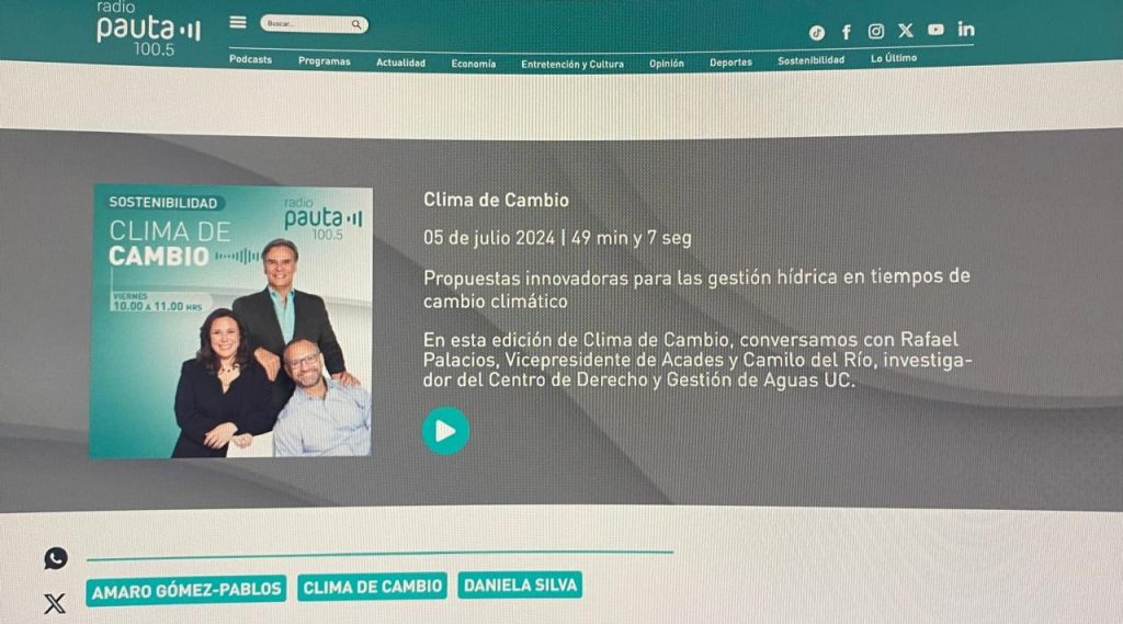 3. [Radio Pauta] Entrevista Camilo Del Río – Programa Clima de Cambio: Propuestas innovadoras para la gestión hídrica en tiempos de cambio climático